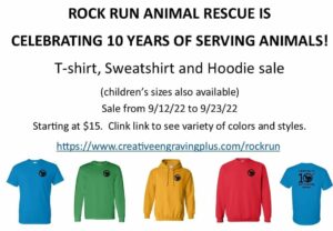 A portion of every sale will be donated back to Rock Run Animal Rescue.